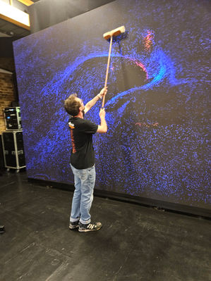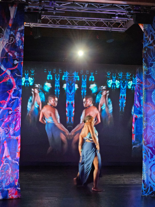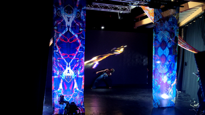 The main part of the Notch design focused around interactivity with the dancer using a Hokuyo LiDAR mounted above the LED screen, allowing the dancer to interact with the content during key moments of the dance, the other part was a pre-recorded piece of footage that was fed into Notch where image and particle effects were overlaid, this was then shown on the screen for the dancer to react too.